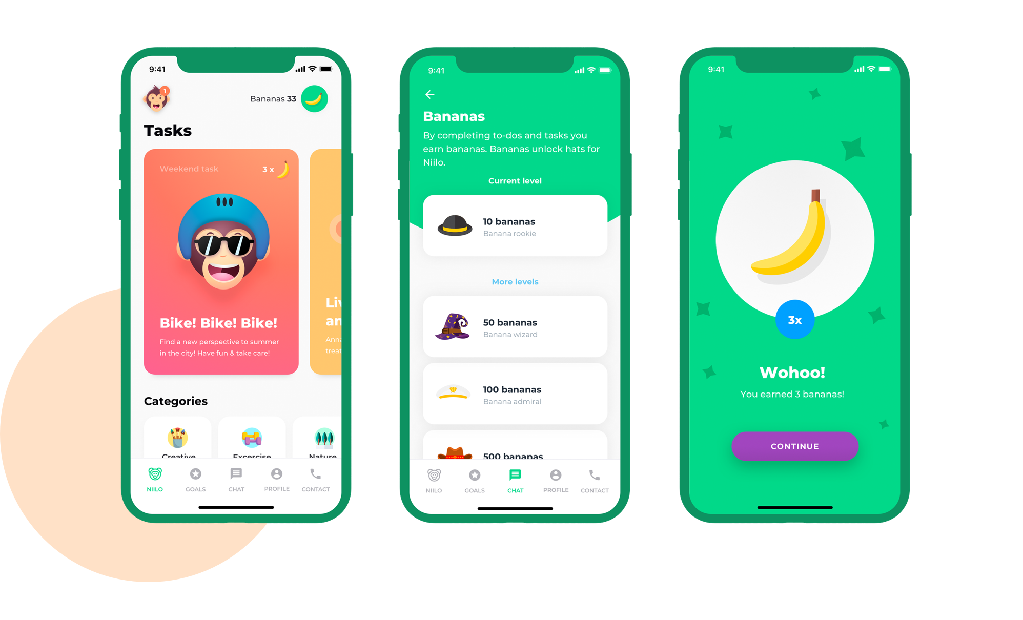Niilo brings support and delight to everyday life Niilo is a digital helper that supports mental health rehabilitees to build routines for independent living, being more active & responsible, and connecting with others. It is highly relevant to the context and co-designed with the users to maximize the impact. Designed for motivational support The users can set up reminders to support the building of routines for independent living: taking medicine and taking care of themselves and their homes. Reminders depend on the user’s own goals. Niilo provides tasks for meaningful activation and building social connections and confidence. Sharing experiences Being seen, heard & understood and creating a narrative of one’s experiences is a powerful tool towards recovery. Niilo can be used as a platform for stories that help the rehabilitates to understand one is not alone. Digital meeting points The in-app chat provides a way to connect with peers & support persons. Chat is considered the most exciting feature by most users, and it has spawned social innovations. E.g. The Experience experts run weekly hosted “chat sessions” with different topics, where the community gathers for a chat twice a month. Personalized recovery path Designed with the users, an easy, inspiring goal-setting process. Niilo guides the user through choosing a goal, breaking the goal into achievable pieces and gathering social support for achieving the goal, and nudging the user to keep up the good work.
